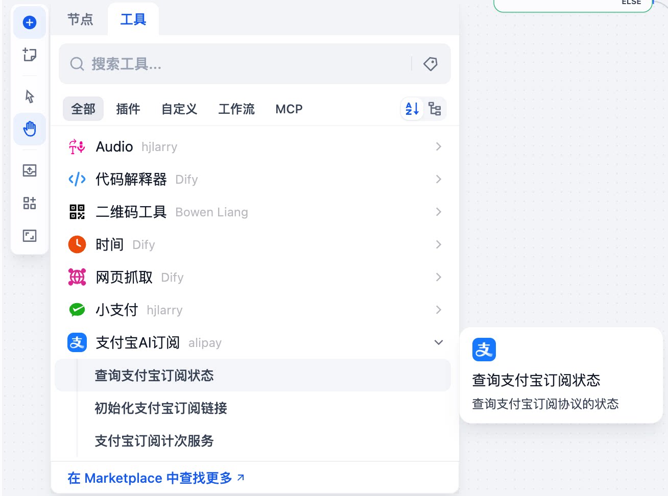 Add the Alipay subscription plugin to your AI agent in the Dify platform.