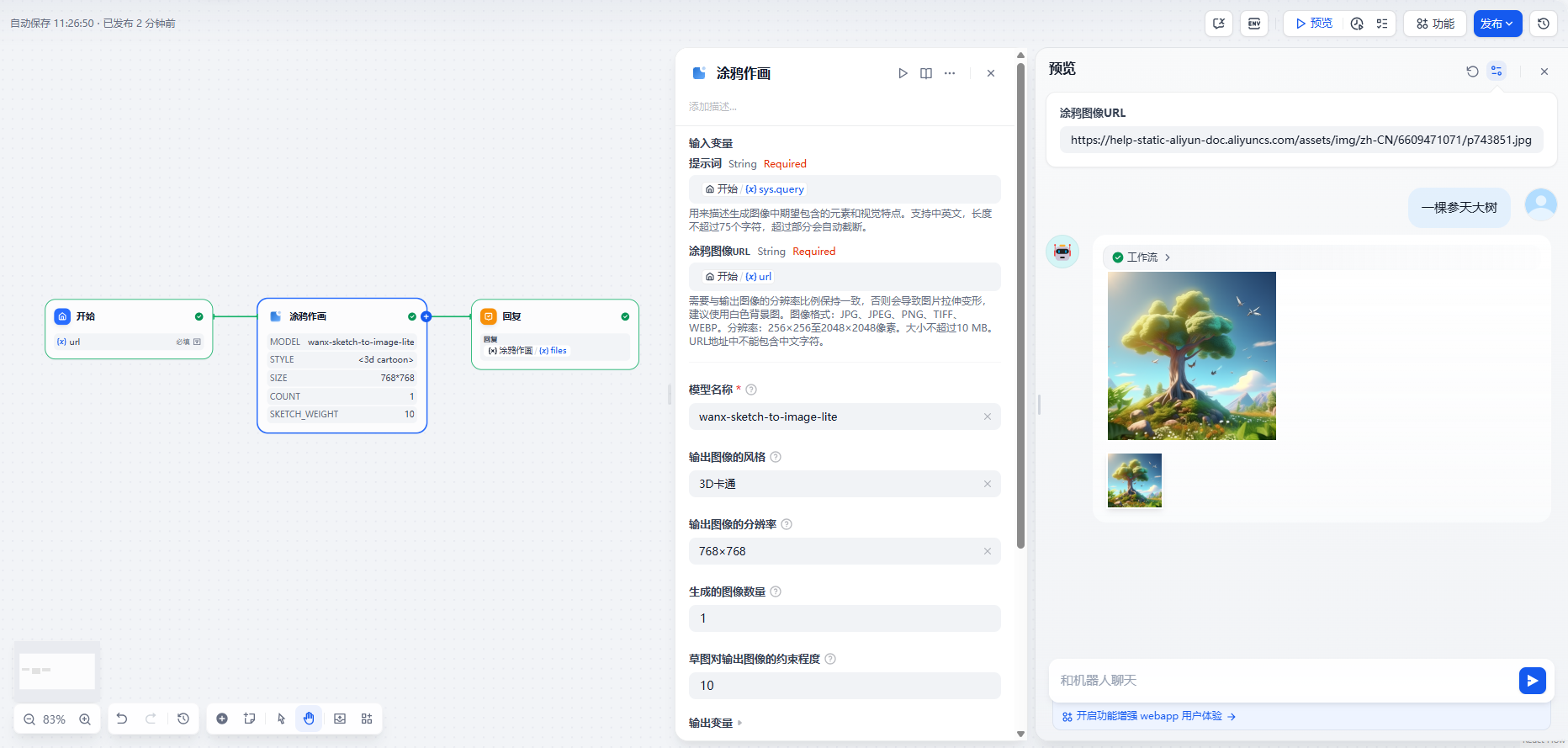 Upload a simple sketch or draw one directly in Dify. ImageTool will use the Tonyi API to refine hand‑drawn sketches into polished artwork.