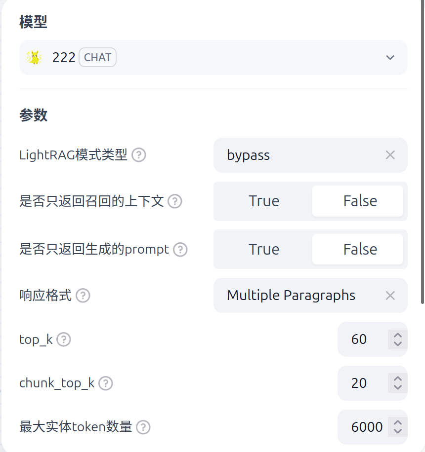 - You can change the mode configure for request lightrag