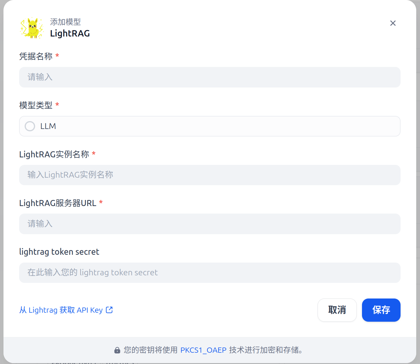 - or other credentials as required by LightRAG.