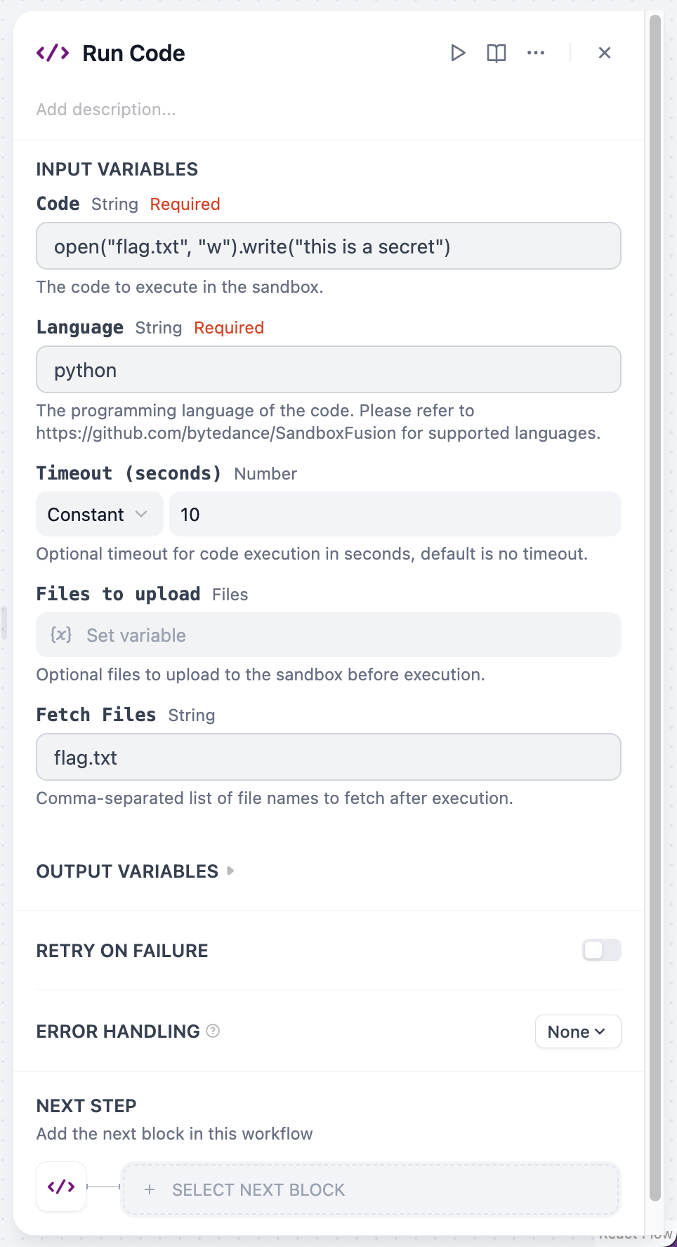 Sandbox Fusion is a tool that allows you to run and test your code in a sandboxed environment, developed by Bytedance. You can think of it as an alternative to DifySandbox that supports more languages but offers weaker security.