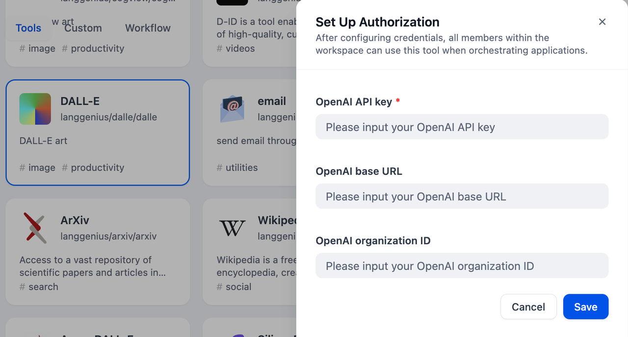 DALL-E is an AI image generator developed by OpenAI that generates images based on text prompts. Dify has integrated the DALL-E tool, and the following are the steps to configure and use the DALL-E tool in Dify.