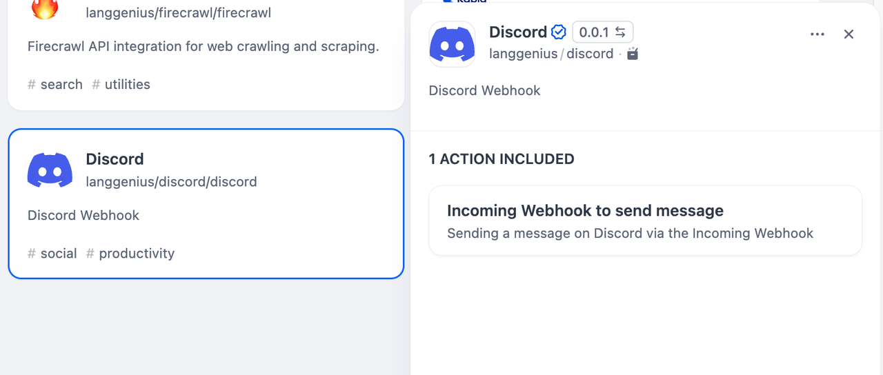Discord is a communication platform designed for communities. It offers features like text and voice channels, direct messaging, and server-based organization. In Dify, Discord tools allow users to create a random bot with random username and avatar to send messages.