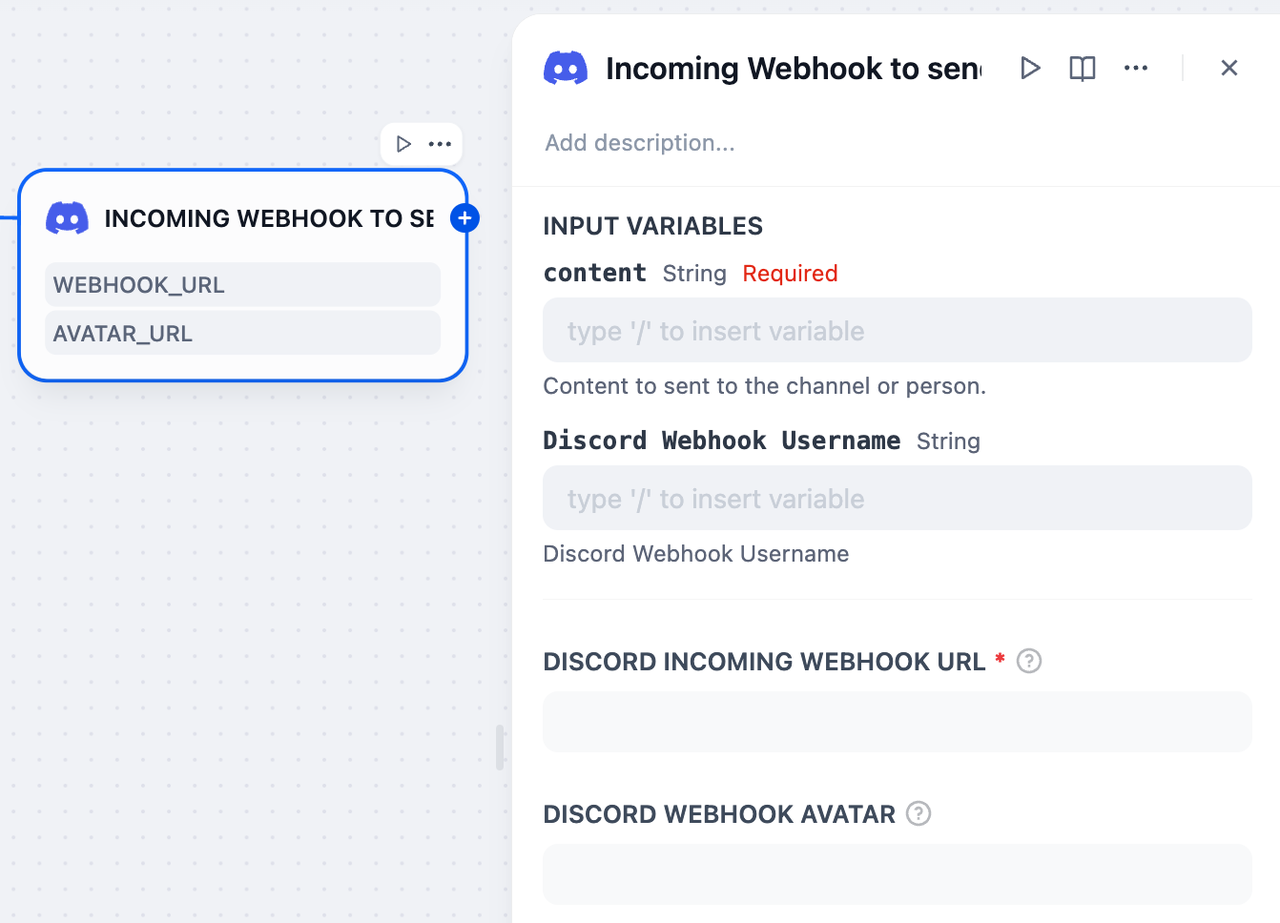 Add the Discord tool in the Agent application, then fill in the to call this tool.