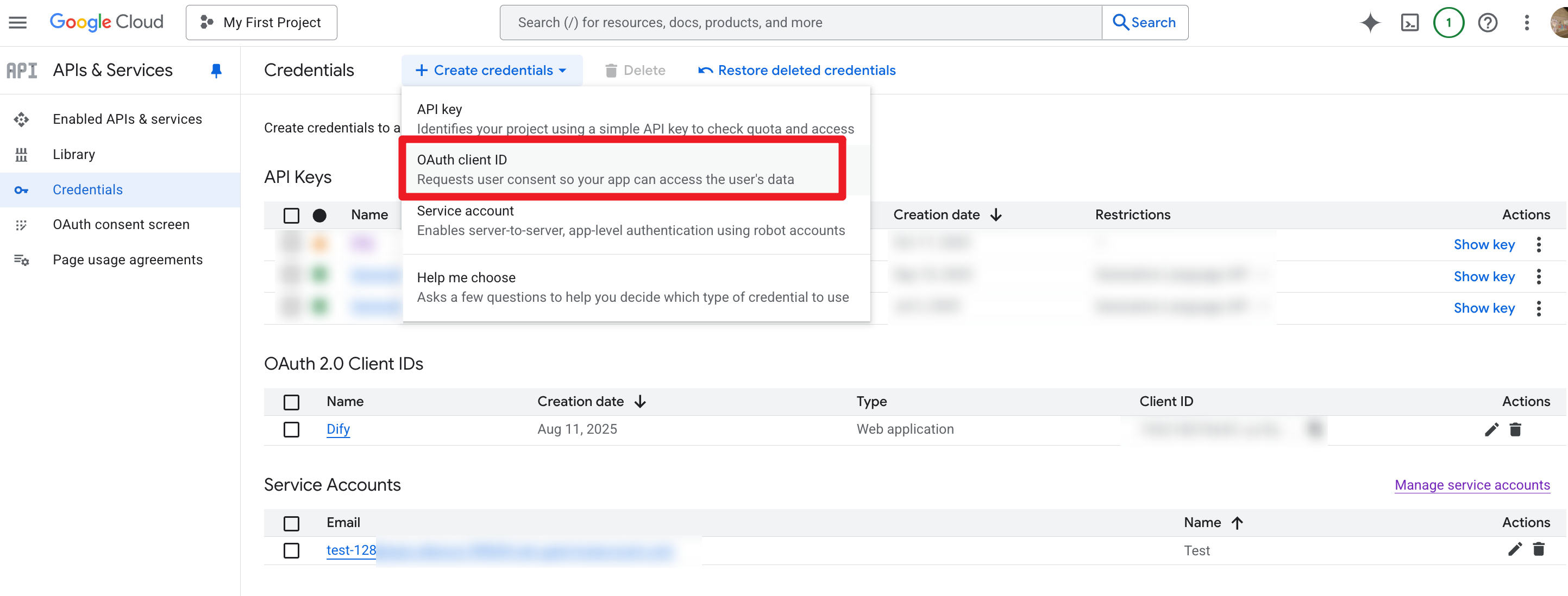 Enter OAuth credentials