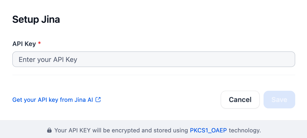 After installing the plugin, configure the API key and API base within the Model Provider settings. Obtain your API key from here. Once saved, you can begin using Jina to build your AI agents and agentic workflows.