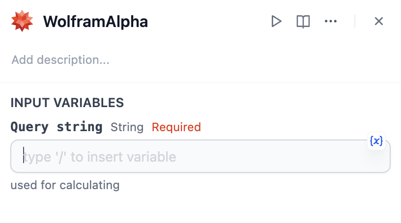 2. Add WolframAlpha node to your workflow.