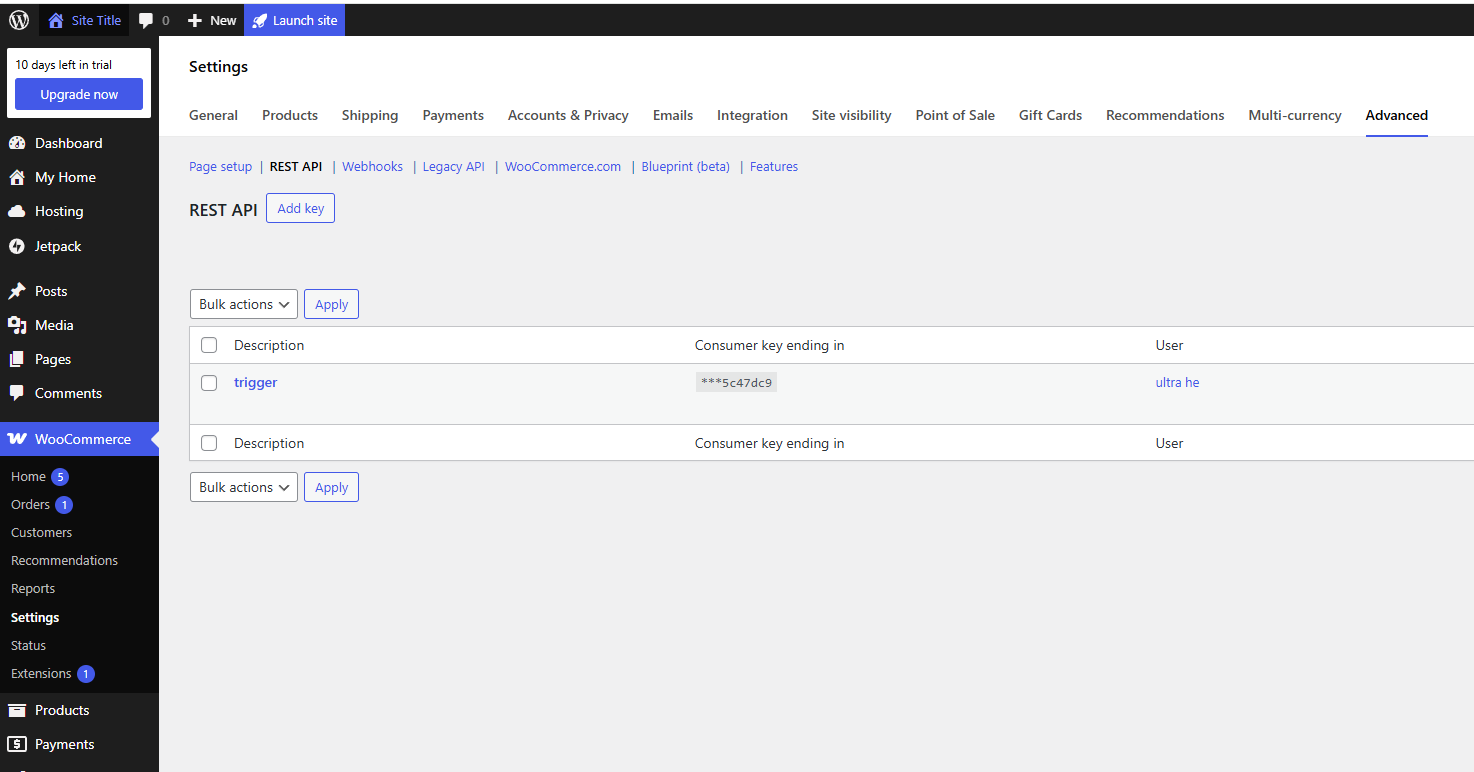 - Go to WooCommerce → Settings → Advanced → REST API