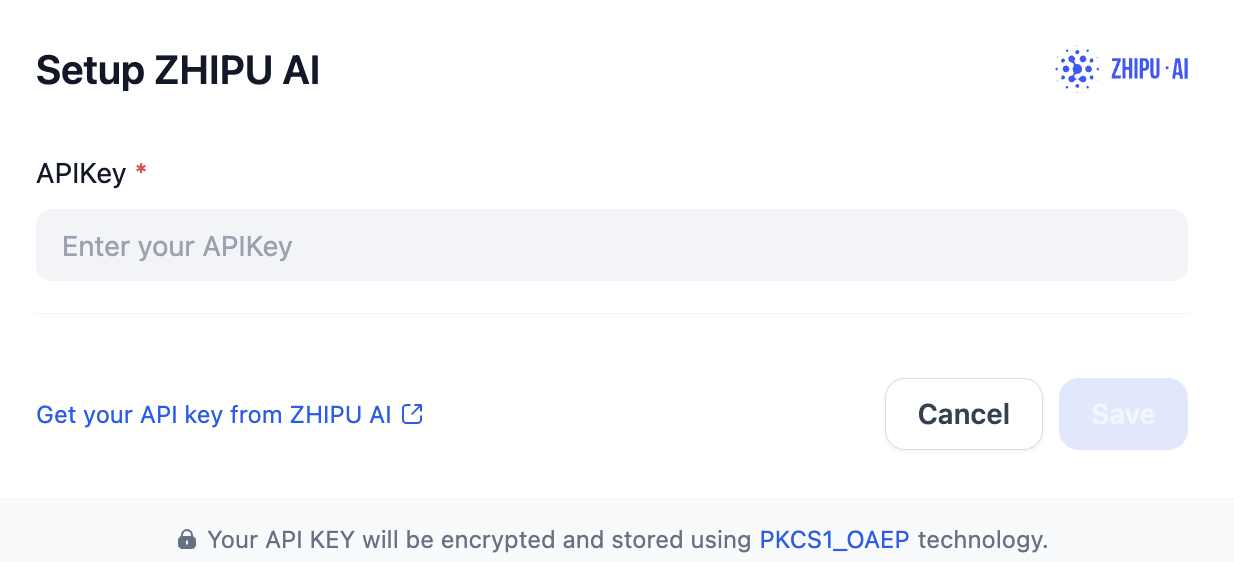 After installation, you need to get API keys from Zhipu AI and setup in Settings -> Model Provider.