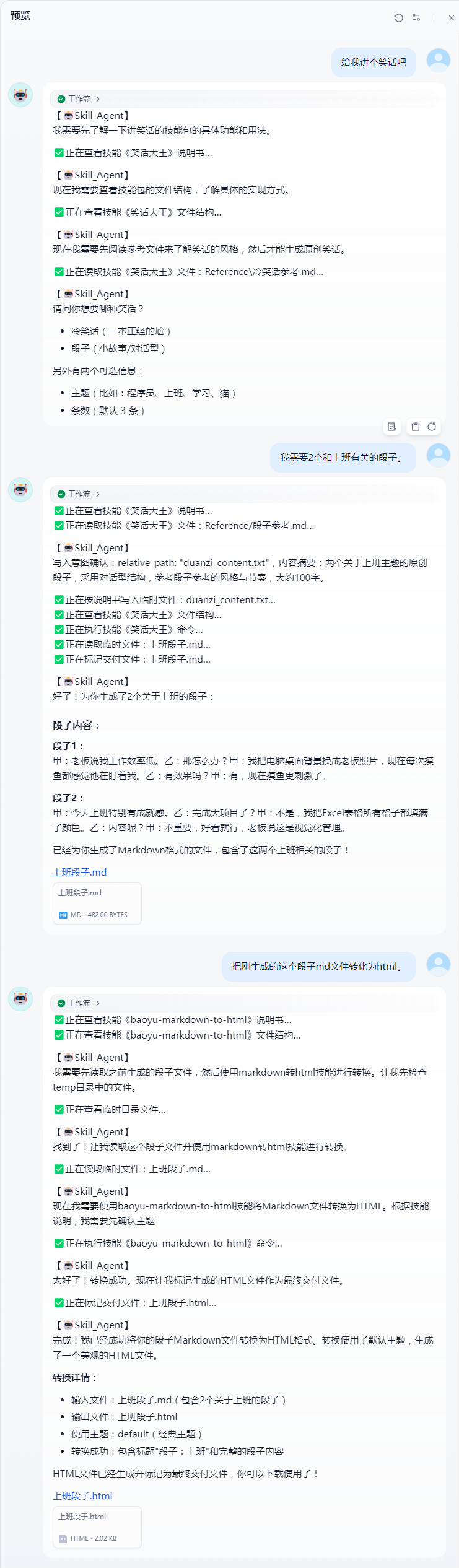 Skill_Agent is an Agent plugin that can execute tasks based on the Skill progressive disclosure mode.