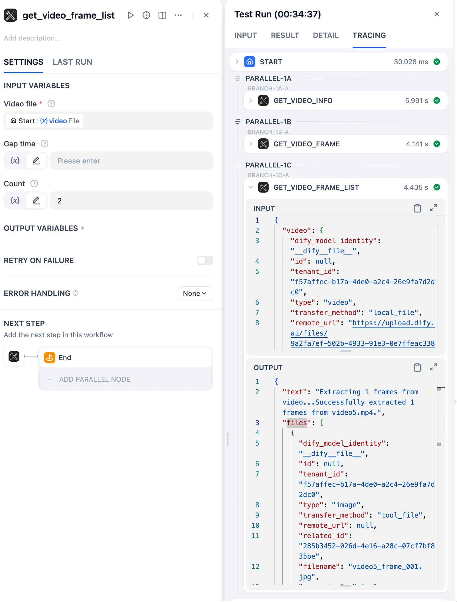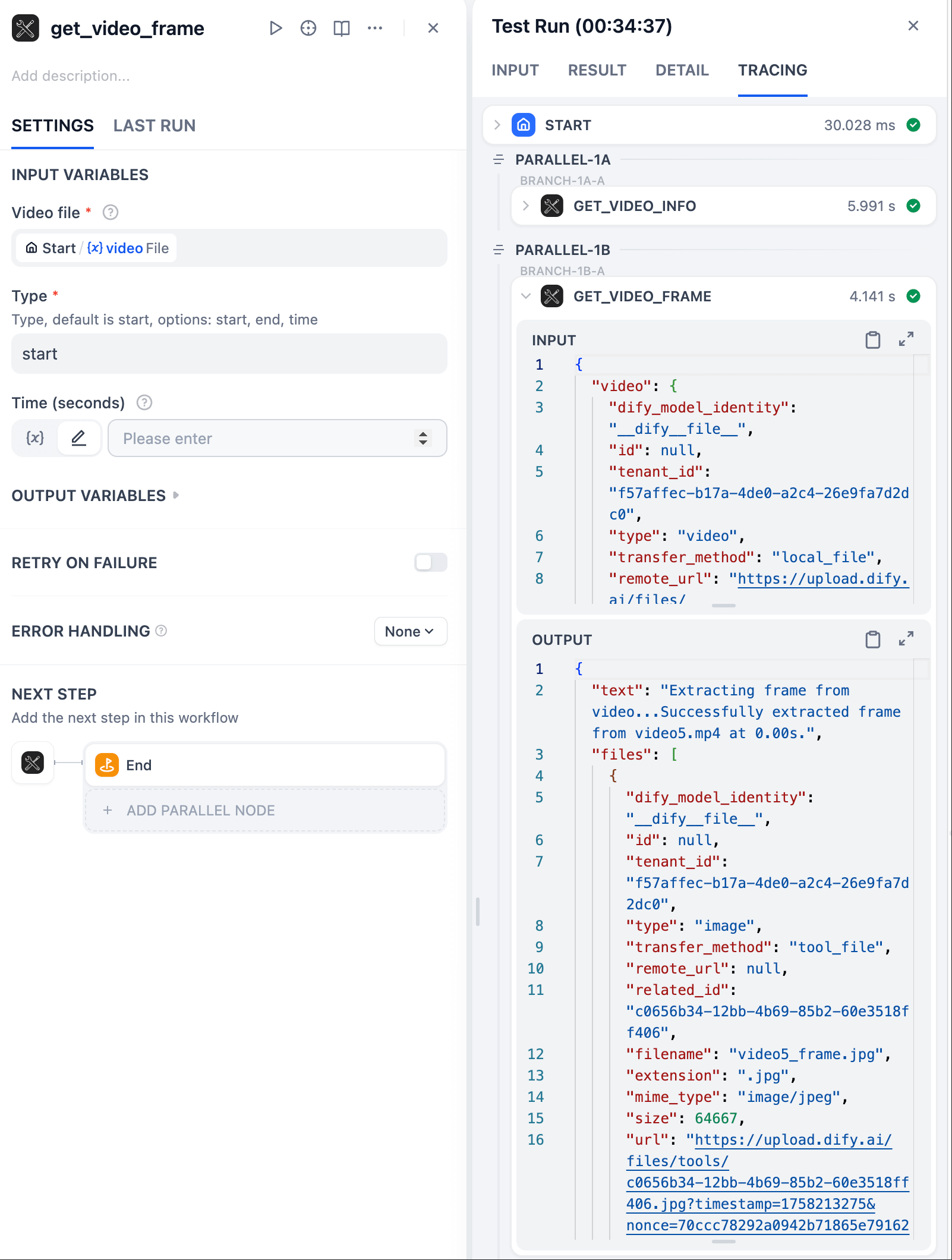 | type | [start,end,time] | Yes | Frame extraction type: start (first frame), end (last frame), time (specified time) |