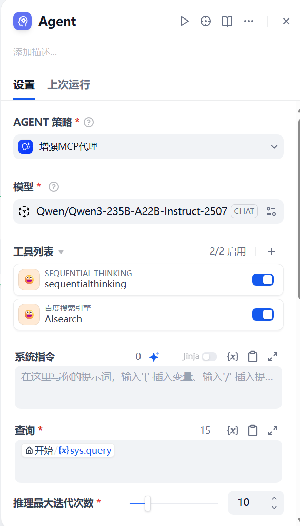 - (Optional, default: 20): Sets the maximum number of execution iterations for the Agent, preventing infinite loops.