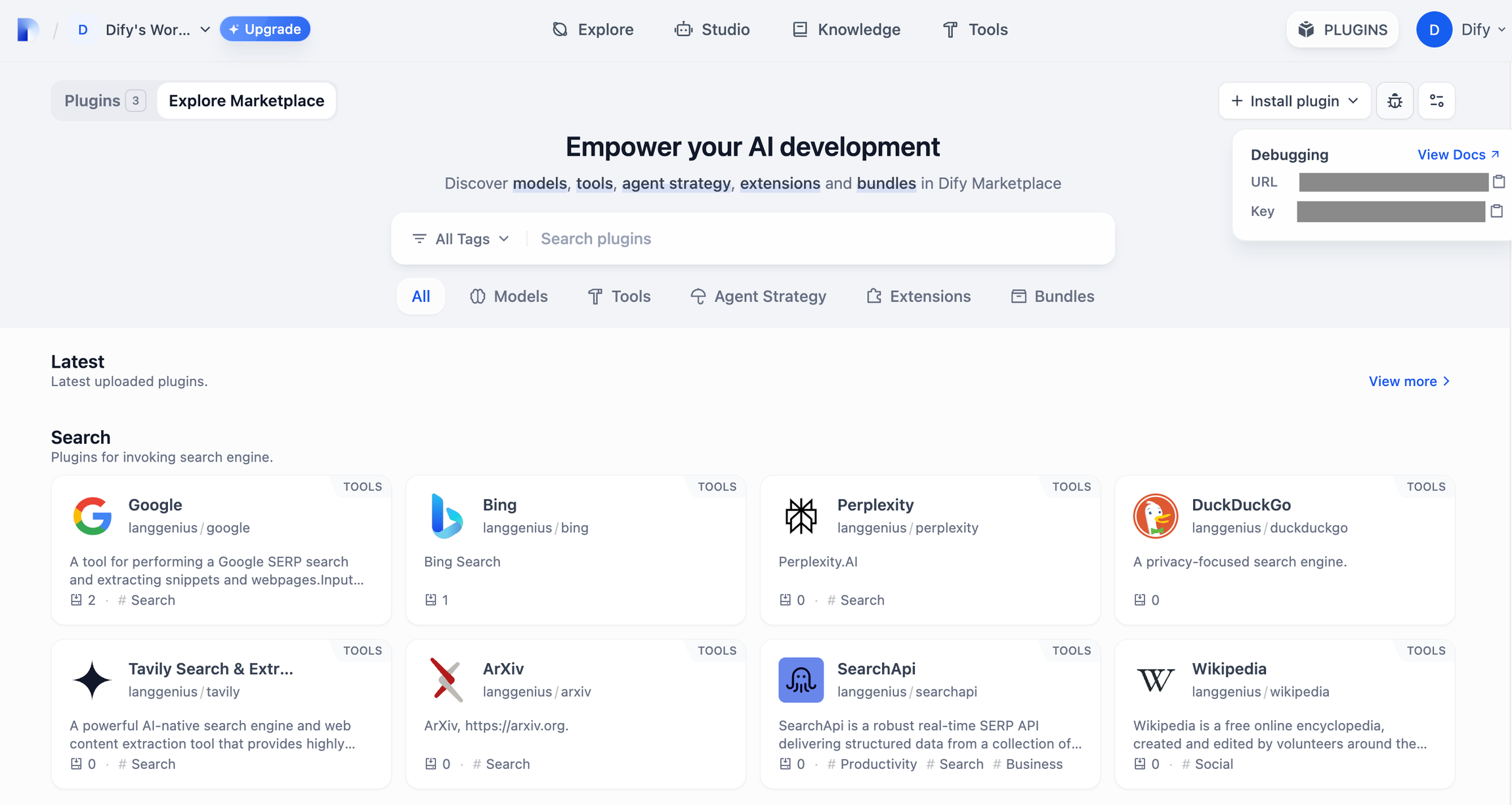 On the platform, go to the "Plugin Management" page to get the debugging key and remote server address.