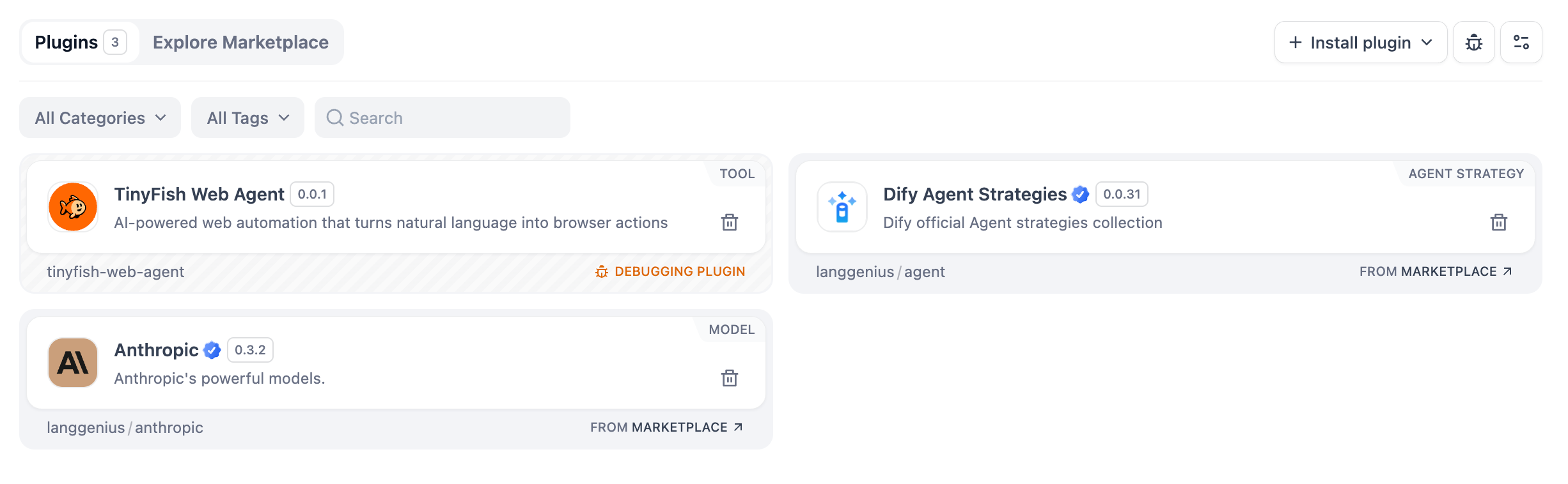 We love getting contributions! To get started, here's how to set up development for the TinyFish Web Agent Dify Plugin: