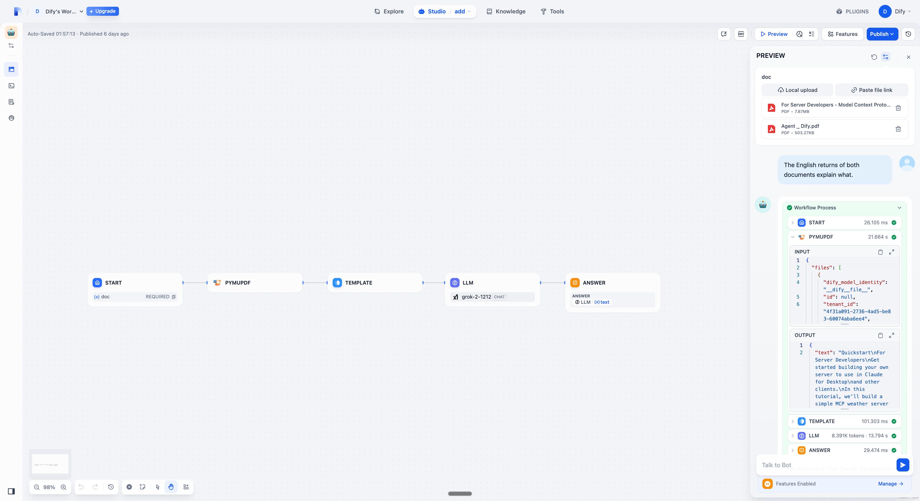 - All processing happens within the Dify environment