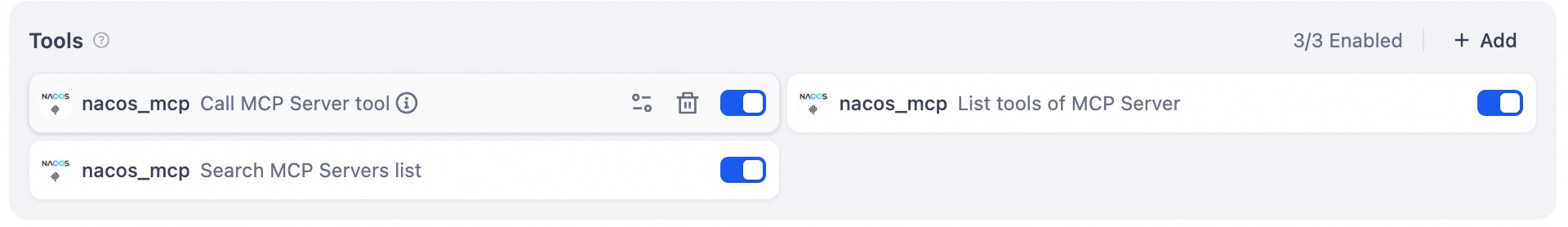 The Nacos MCP plugin provides the following tools: